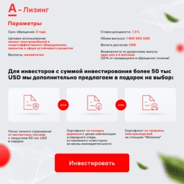 Целевое использование: на финансирование покупок в лизинг электромобилей и энергоэффективного оборудования, а также проектов в сфере устойчивого развития