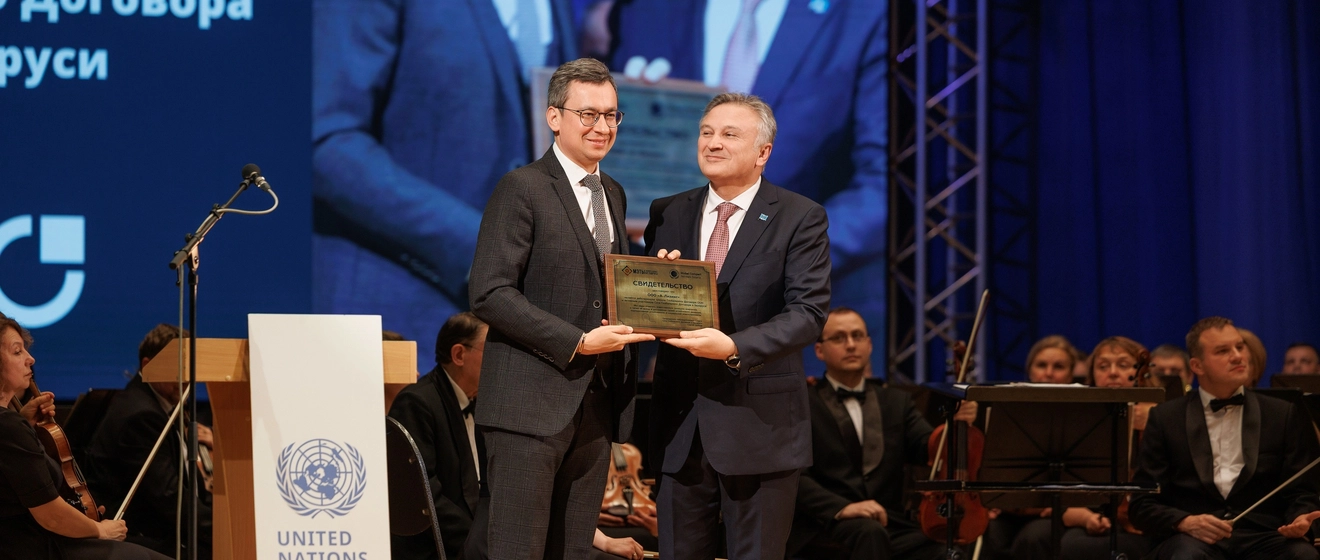 24 октября в Белорусской государственной филармонии состоялось торжественное мероприятие, посвящённое 80-летию Организации Объединённых Наций. В рамках церемонии директору «А-Лизинг» Рустему Ильгизовичу Исмагилову было вручёно свидетельство участника Сети Глобального Договора ООН в Беларуси.